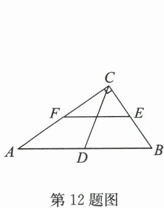 12. 如图,在 $△ ABC$ 中,$∠ ACB=90^{\circ}$,$D$,$E$,$F$ 分别为 $AB$,$BC$,$CA$ 的中点。若 $EF$ 的长为 10,则 $CD$ 的长为