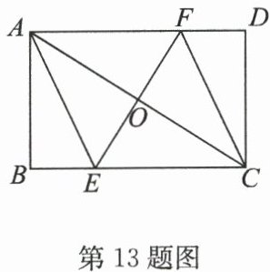13. (2025·宿城新区期中)如图,矩形 $ABCD$ 中,对角线 $AC$ 的垂直平分线 $EF$ 分别交 $BC$,$AD$ 于点 $E$,$F$。若 $BE=\frac{7}{4}$,$AF=\frac{25}{4}$,则 $AC$ 的长为