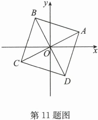 11. (2024·常州)如图,在平面直角坐标系 $xOy$ 中,正方形 $ABCD$ 的对角线 $AC$,$BD$ 相交于原点 $O$。若点 $A$ 的坐标是 $(2,1)$,则点 $C$ 的坐标是