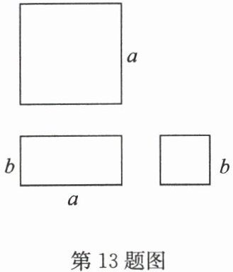 13.(2025·河南信阳期末)如图,这三种规格的卡片共有9张,其中边长为$a$的正方形卡片4张,边长为$b$的正方形卡片1张,长、宽分别为$a$,$b$的长方形卡片4张。现要用这9张卡片拼成一个大正方形,则这个大正方形的边长为