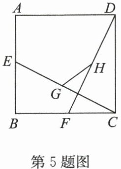 5. 如图,在边长为$4\sqrt{2}$的正方形$ABCD$中,$E,F$分别是边$AB,BC$的中点,连接$EC,FD$,$G,H$分别是$EC,FD$的中点,连接$GH$,则$GH$的长为(