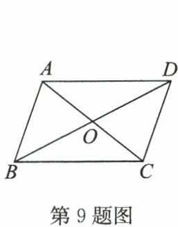 9. 如图,在$□ ABCD$中,$AD = 3$,对角线$AC$与$BD$相交于点$O$,$AC + BD = 10$,则$△ BOC$的周长为