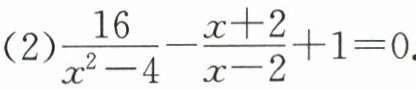 (2)$\frac{16}{x^{2}-4}-\frac{x + 2}{x - 2}+1 = 0$.