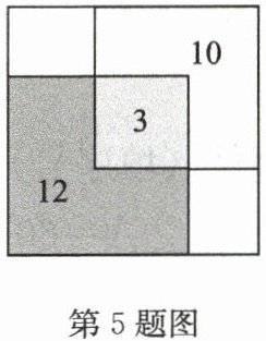 5. 在一个大正方形上,按如图的方式粘贴面积分别为12,10的两个小正方形.粘贴后,这两个小正方形重合部分的面积为3,则空白部分的面积为(