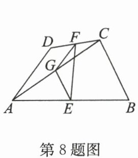 8. 如图,在四边形ABCD中,$AD=BC$,E,F,G分别是AB,DC,AC的中点.若$∠ ACB=64^{\circ}$,$∠ DAC=22^{\circ}$,则$∠ EFG$的度数为