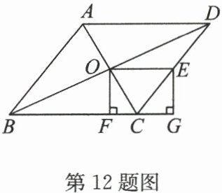 12. (15分)如图,$□ ABCD$的对角线AC,BD相交于点O,E是CD边的中点,连接OE.过点O,E作直线BC的垂线,垂足分别为F,G.
