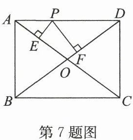 7. 如图,在矩形 $ABCD$ 中,$AB = 6,BC = 8$,对角线 $AC,BD$ 相交于点 $O,P$ 是线段 $AD$ 上任意一点(点 $P$ 不与 $A,D$ 重合),过点 $P$ 作 $PE ⊥ AC$ 于点 $E,PF ⊥ BD$ 于点 $F$,则 $PE + PF =$