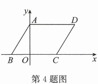 4. 如图,四边形 $ABCD$ 是平行四边形,点 $A$ 在 $y$ 轴上,$B,C$ 两点在 $x$ 轴上,且$∠ ABC = 60^{\circ}$,点 $A$ 的坐标为$(0,\sqrt{3})$,点 $C$ 的坐标为$(3,0)$,则点 $D$ 的坐标为 (