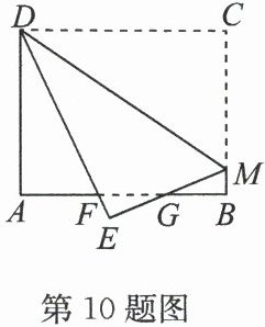 10. 如图,在长方形纸片 $ABCD$ 中,$AD = 8,AB = 10$,点 $M$ 为 $BC$ 上一点,将$△ CDM$ 沿 $DM$ 翻至$△ EDM,EM$ 交 $AB$ 于点 $G,ED$ 交 $AB$ 于点 $F$,且$BG = EG$,则 $CM$ 的长度是