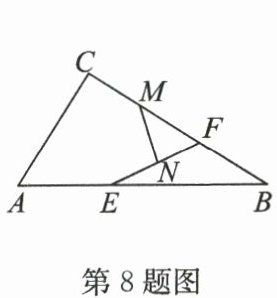 8. 如图,在$Rt△ ABC$中,$∠ C=90^{\circ}$,$AC=5$,$BC=12$,点$E$,$F$分别是边$AB$,$BC$上的动点,点$M$,$N$分别为$CF$,$EF$的中点,则线段$MN$的最小值为
