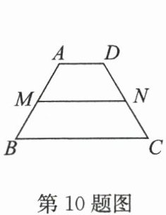 10. 如图,在梯形$ABCD$中,$AD// BC$,$AB=DC=8$,$∠ B=60^{\circ}$,$BC=12$,$M$,$N$分别是$AB$,$DC$的中点,连接$MN$,则线段$MN$的长为