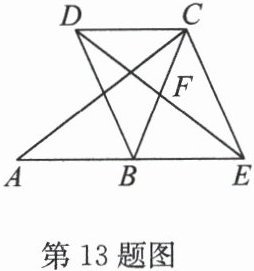 13. (15分)如图,在$△ ABC$中,$F$是$BC$的中点,$E$是线段$AB$延长线上一动点,连接$EF$,过点$C$作$CD// AB$,与线段$EF$的延长线交于点$D$,连接$BD$,$CE$.