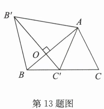 13. 如图,在$△ ABC$中,$∠ ABC=40^{\circ}$,将$△ ABC$绕点$A$顺时针旋转,使点$C$的对应点$C'$落在边$BC$上,连接$BB'$.若$AB⊥ B'C'$,则$∠ ABB'$的度数是
