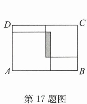 17. 如图,把两个边长不等的正方形放置在周长为16的矩形$ABCD$内,两个正方形中均有一组邻边分别落在矩形$ABCD$的一组邻边上.如果两个正方形的周长和为25,那么这两个正方形的重叠部分(图中阴影部分所示)的周长为