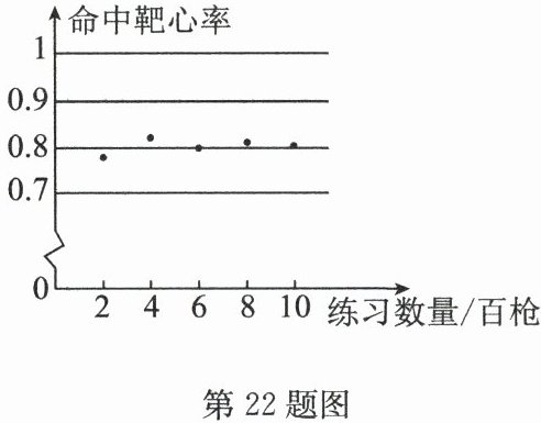 22. 某运动员进行打靶训练,对该运动员打靶正中靶心的情况进行统计,并绘制成如图所示的统计图.请根据图中信息回答问题: