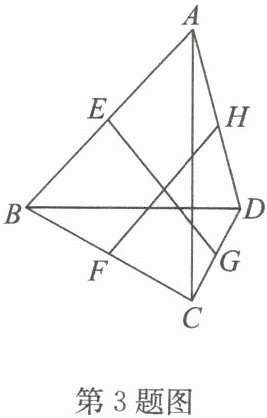 3. 如图,四边形 $ABCD$ 中,$AC ⊥ BD$,$E$,$F$,$G$,$H$ 分别为 $AB$,$BC$,$CD$,$DA$ 的中点,判断 $EG$ 与 $FH$ 的数量关系并加以证明.