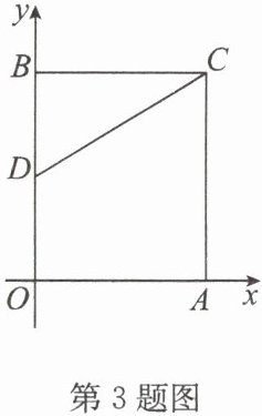 3. 如图,在平面直角坐标系中,矩形 $ OACB $ 的顶点 $ O $ 在坐标原点,顶点 $ A $,$ B $ 分别在 $ x $ 轴、$ y $ 轴的正半轴上,$ A(3, 0) $,$ B(0, 4) $,$ D $ 为边 $ OB $ 的中点。