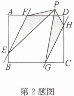 2. 如图,在矩形$ABCD$中,$AD = 6$,$AB = 5$,点$E$,$F$,$G$,$H$分别在$AB$,$AD$,$BC$,$CD$上,且$AF = CG = 2$,$BE = DH = 1$,点$P$是直线$EF$,$GH$之间任意一点,连接$PE$,$PF$,$PG$,$PH$,则$△ PEF$与$△ PGH$的面积和等于