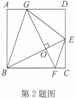 2. 如图,在正方形ABCD中,E为CD的中点,点F,G分别在BC,AD边上,且GF⊥BE,相交于点O,若四边形BFEG的面积为$\frac{5}{2}$,则AB的长为