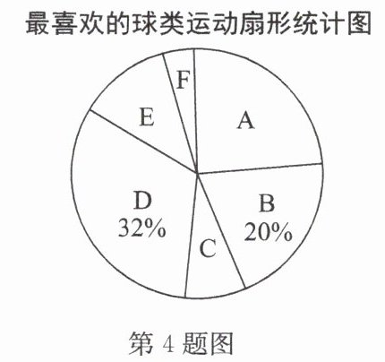 4. 为了解某校学生最喜欢的球类运动情况,随机选取该校部分学生进行调查,要求每名学生只写一项最喜欢的球类运动. 以下是根据调查结果绘制的不完整的统计图表.