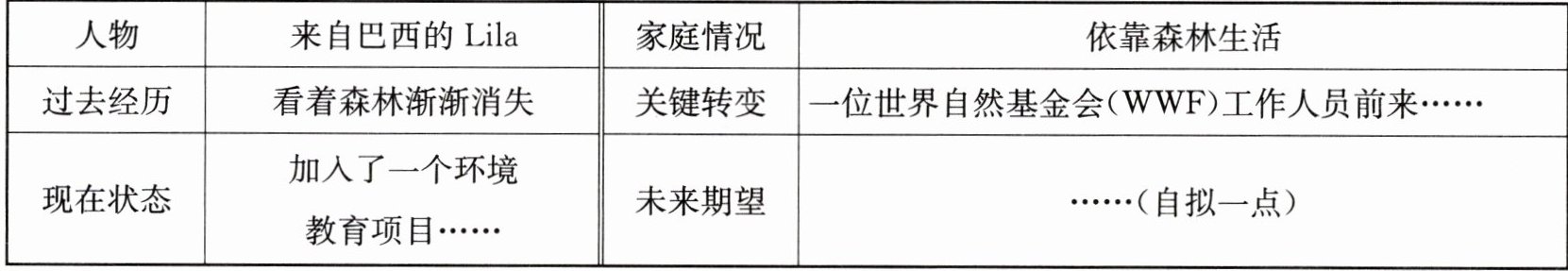请根据表格中的要点,以“A girl's life was changed by WWF”为题写一篇短文,不少于90词。