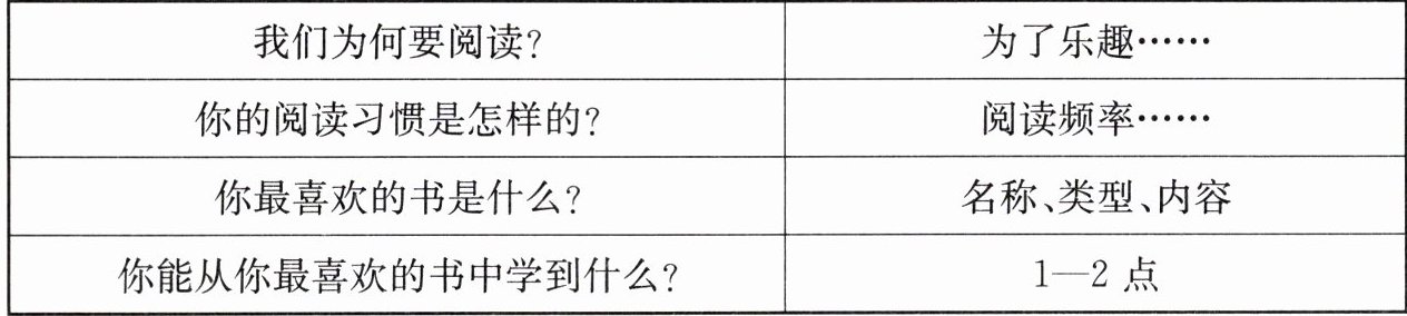 1. 围绕“为何阅读”,结合提示“为了乐趣”,可写阅读带来乐趣、放松和知识;2. “阅读习惯”按“阅读频率”提示,说明每周阅读次数及时间;3. “最喜欢的书”选参考书目《Harry Potter》,说明类型(奇幻小说)和内容(主角哈利的冒险);4. “学到的东西”提炼1-2点,如友谊重要性和勇敢面对困难;5. 控制词数,使用八年级下册词汇,结构清晰。