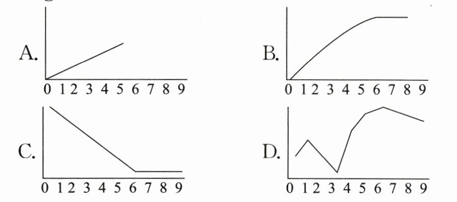 答案:8. B 【点拨】根据“When you greet up to six people, your happiness score goes up. After that, the score shows no further rise.”可知,图片应显示先升后平的曲线。故选B。