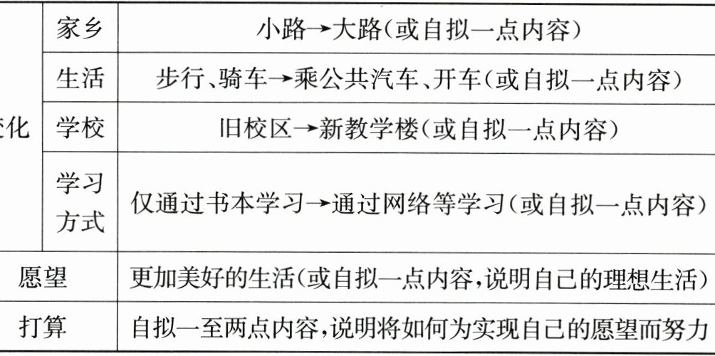 某英文报纸开展了关于生活变化的征文活动,请你根据下表所提示的要点,以“我们生活的变化”为题,用英语为该报写一篇稿件,简述家乡、生活、学校及学习方式的若干变化,展望未来生活及如何为此努力。