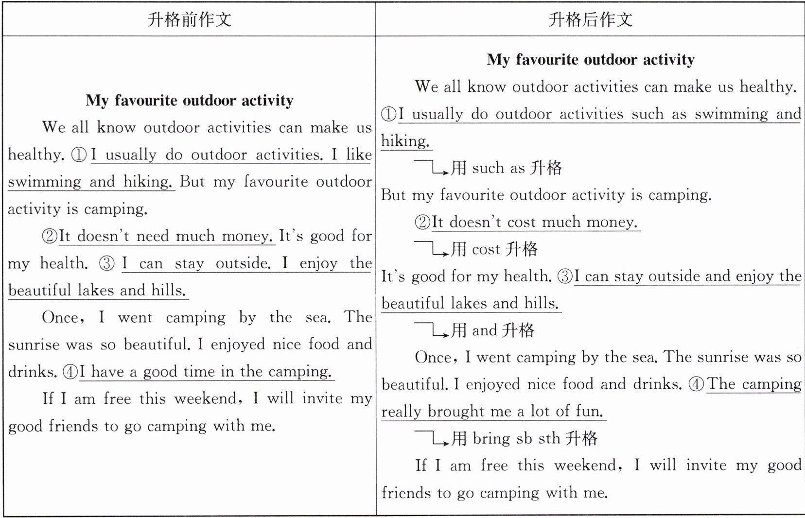 请根据以下要点提示,以《我最喜欢的户外活动》为题,写一篇不少于60词的英语短文。