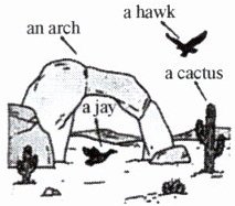 If you ask most people about the desert, they might describe(描述) sand and rocks. Arches National Park in Utah shows a different 1. Visitors to Arches are amazed by the life and 2 in the desert. Wildflowers and cactuses add bright colours to the red rock. Blue jays and red-tailed hawks fly up high in the sky.