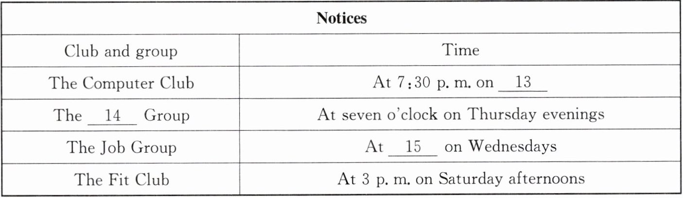 听第一篇短文,回答第13至15小题。请根据短文内容,选择正确答案,完成信息记录表。答题完毕,请等待“嘀”的信号,进入下一篇短文。