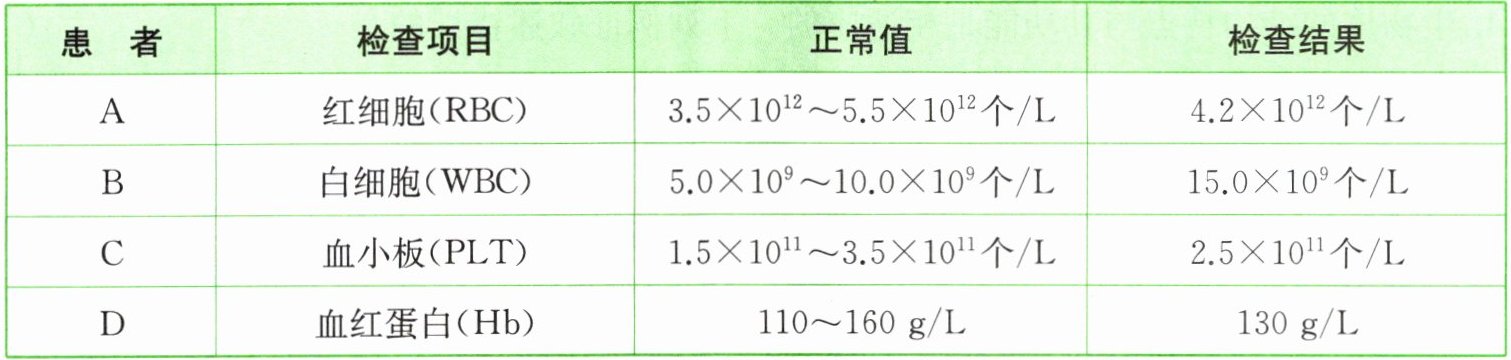 18. 下表是四位患者的血常规化验结果(其他检查项目正常),据表分析体内可能有炎症的是(