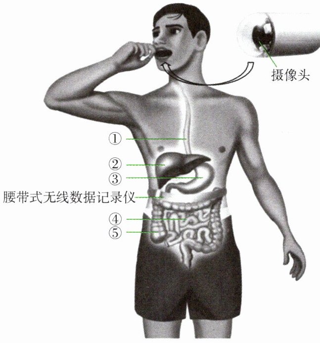 27. 右图所示的胶囊内镜是一种辅助诊疗设备,受检者口服后,摄像头可捕捉消化道内的图像,并传输给记录仪。胶囊内镜由口进入体内到自然排出体外所经过的结构依次是(
