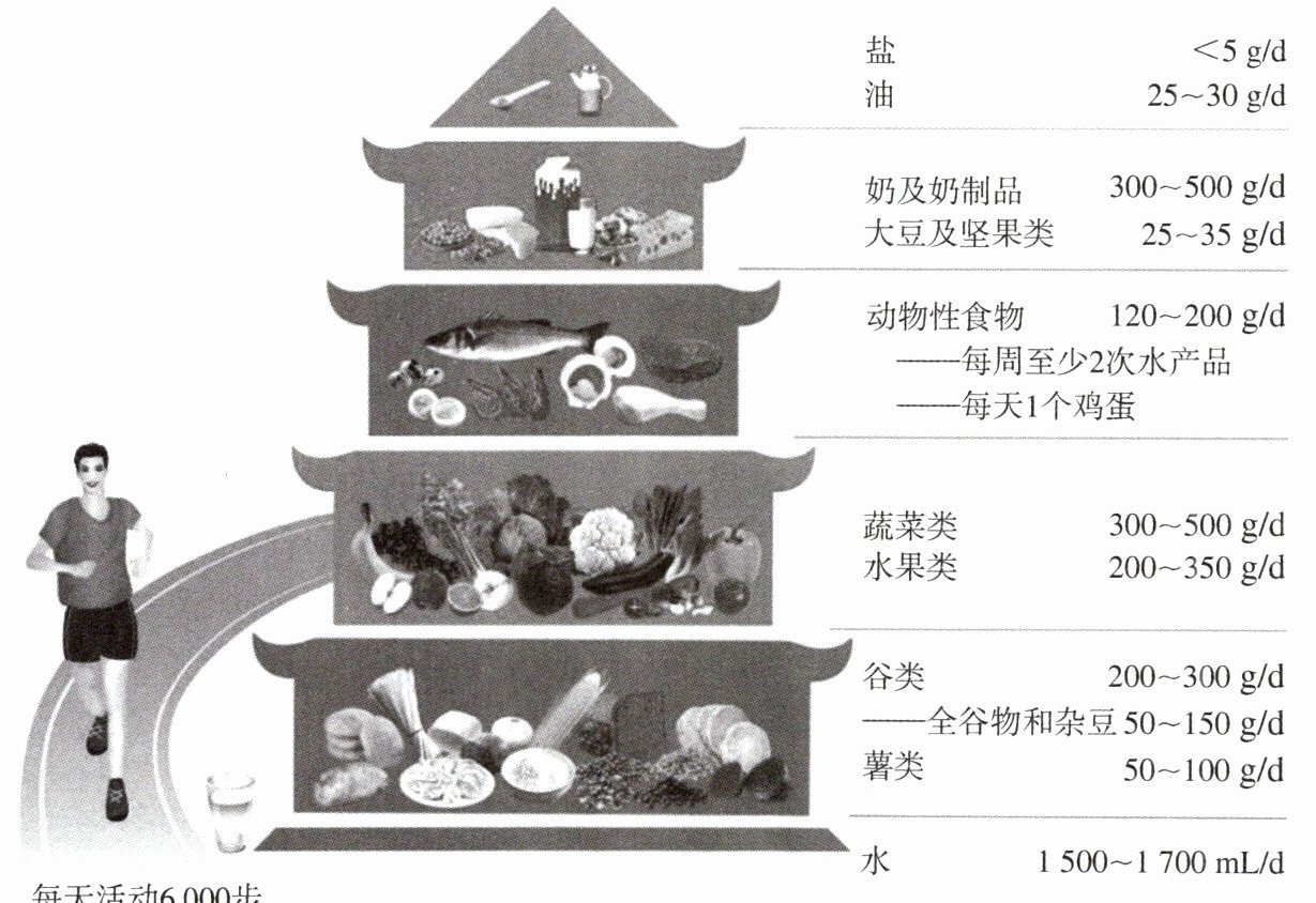 38. 下图是中国营养学会设计的“中国居民平衡膳食宝塔”,据图分析,下列叙述不符合平衡膳食理念的是(