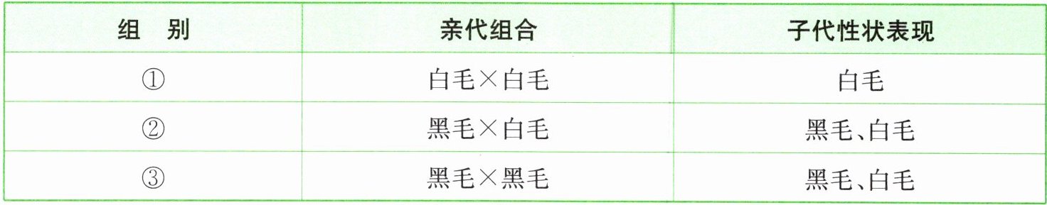组可以判断白毛是隐性性状。(2) 若控制黑毛的基因用 D 表示,控制白毛的基因用 d 表示,则第②组亲代的基因组成是