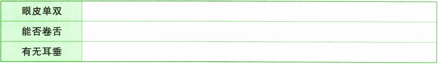 1. 学生4人一小组互相观察并记录自己的下列性状。