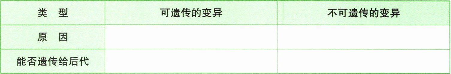 (选填“能”或“不能”)遗传给后代。3. 列表比较可遗传的变异和不可遗传的变异。