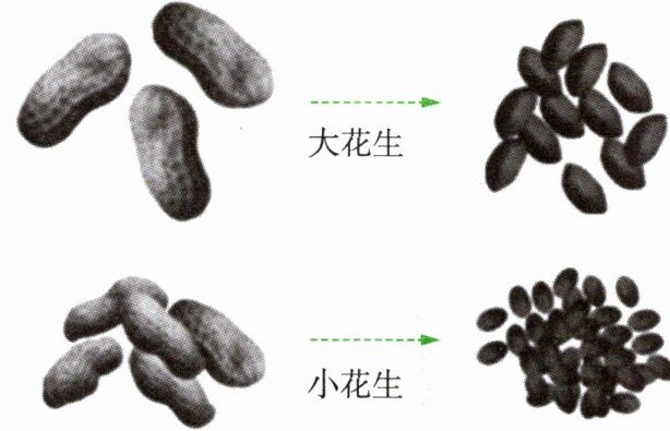 5. 下图为“探究花生果实大小的变异”的活动设计示意图。请据图回答下列问题。