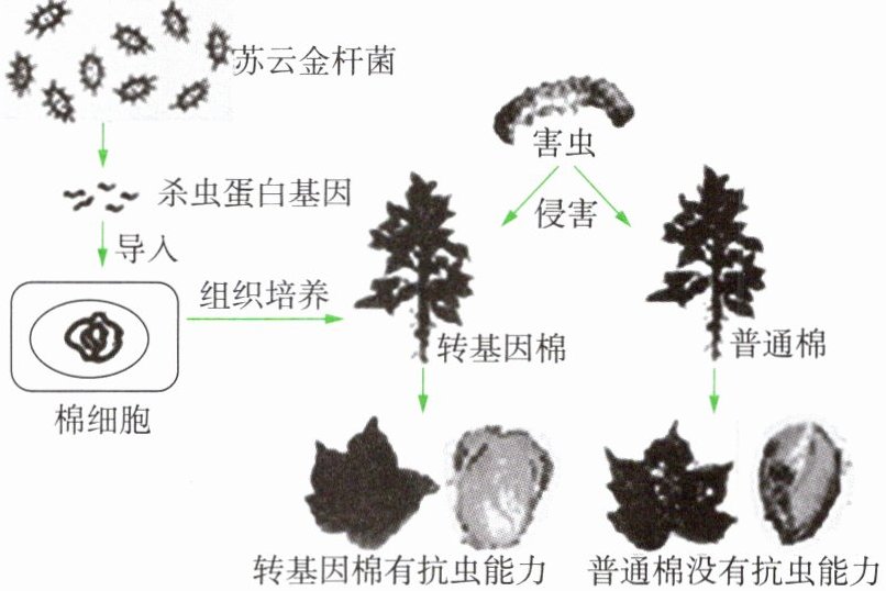 1. 图中转基因棉的杀虫蛋白基因属于外源基因,该基因来自