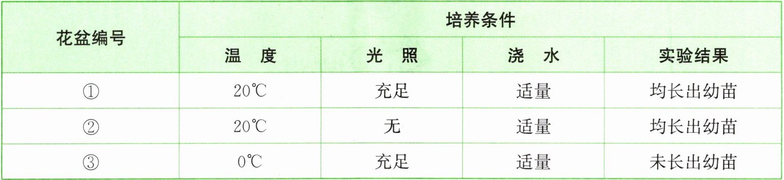 ③将6块马铃薯平均埋进3个小花盆的沙土中5cm深处,按照下表的要求分别培养,并观察、记录实验结果。