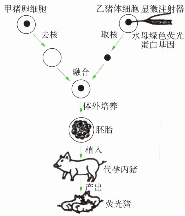 和胚胎移植技术等。(4)荧光猪实验中的细胞核来源于