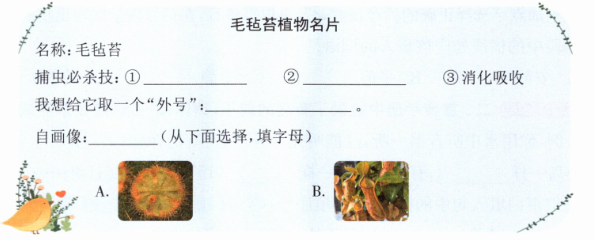 3. 阅读选文二,给毛毡苔制作一张植物名片。