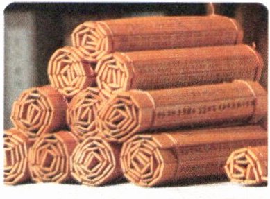 ① 早在几千年前,我们的祖先就创造了文字。那时候还没有纸,人们把文字刻或写在竹木、玉石、陶器、兽骨、青铜、丝帛等材料上。尤其是竹片和木片,是造纸术发明之前中国使用时间最长、应用最广、影响最大的书写材料。这些竹片、木片用绳子穿起来,就成了一册册的书。但是,这种书很笨重,阅读、携带、保存都很不方便。古时候用“学富五车”形容一个人学问高,就是说他读过的书很多,需要用几辆车拉才行呢!