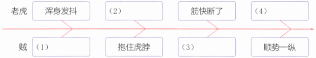 三、为深入理解故事情节,小语需要梳理清楚老虎和贼逃跑的过程。阅读课文选段,完成练习。