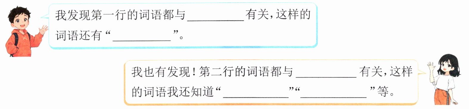 我也有发现!第二行的词语都与有关,这样的词语我还知道“”“”等。