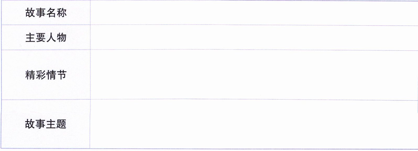 故事我会讲 六、老师想考验同学们讲故事的能力,请你提前准备,把下面的表格补充完整。