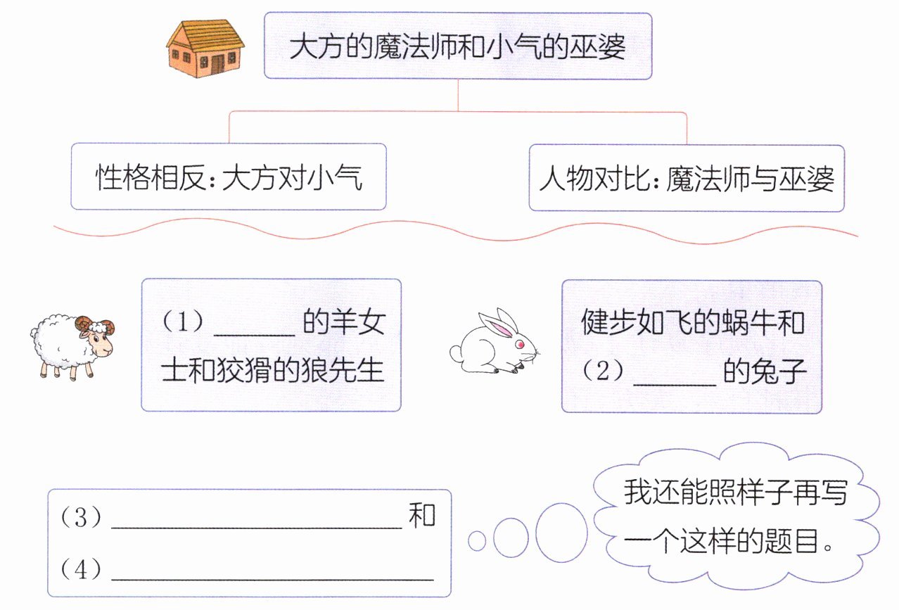 性格相反:大方对小气 人物对比:魔法师与巫婆