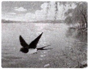 小燕子带了它的剪刀似的尾巴,在阳光满地时,斜飞于旷亮无比的天空,叽的一声,已由这里的稻田上,飞到那边的高柳下了。