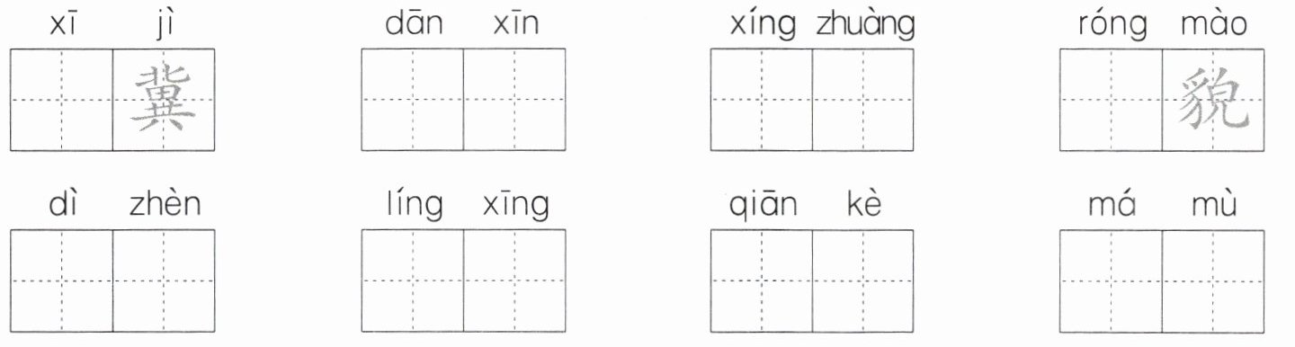 答案:二、希 担心 形状 容 地震 零星 千克 麻木