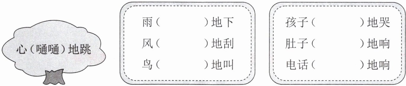 答案:四、 示例:第一列:哗哗 呼呼 喳喳 第二列:哇哇 咕噜噜 丁零零